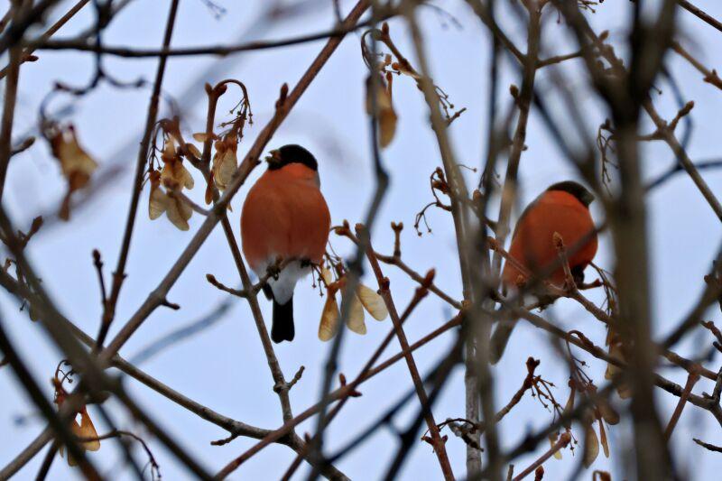 Le Bouvreuil est le joyau de nos forêts: les couleurs vives du mâle, un régal pour les yeux, contrastent avec la sobriété élégante de la femelle. Mais c’est un oiseau émotif et discret qui ne se montre pas volontiers à découvert, le mâle surtout étant avare d’exhibitions. À croire que le bandit cagoulé, émondeur de bourgeons sait qu’il est mal-aimé des arboriculteurs. Souvent caché et paisible, il se signale surtout par son cri doux et mélancolique et ce n’est que tenaillé par la faim qu’il daigne se montrer aux mangeoires.